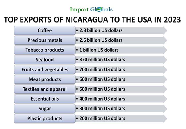 1. The total export value of Nicaragua to the USA stands at 3 billion US dollars in 2023.