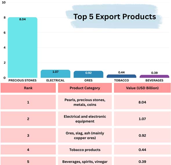 United Arab Emirates (UAE): The UAE became Armenia's leading export destination in 2024, mostly because the gold and diamond industry was growing.