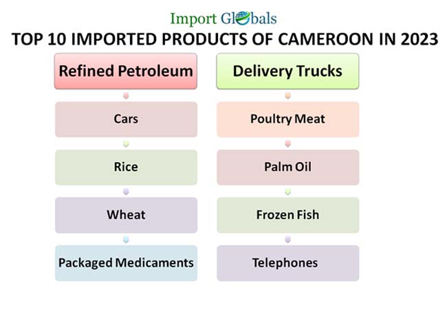 Ans. Refined Petroleum is the top imported product of Cameroon in 2023.