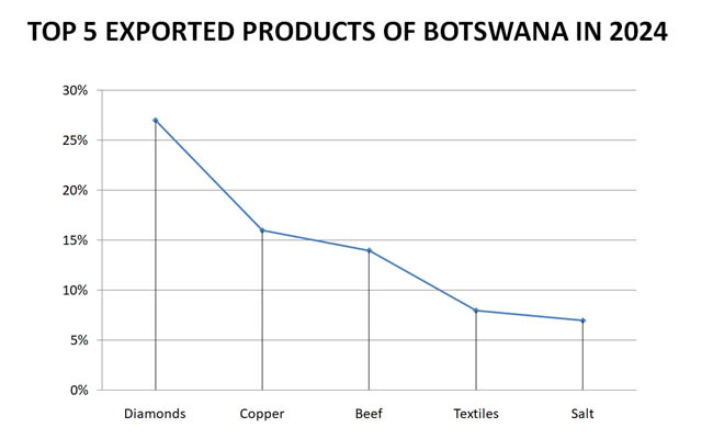Que. What is the export trade value of diamonds from Botswana in 2024?