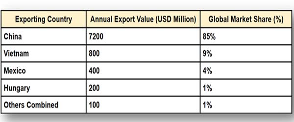 Ans. Visit www.importglobals.com or email info@importglobals.com for more information on up-to-date data.