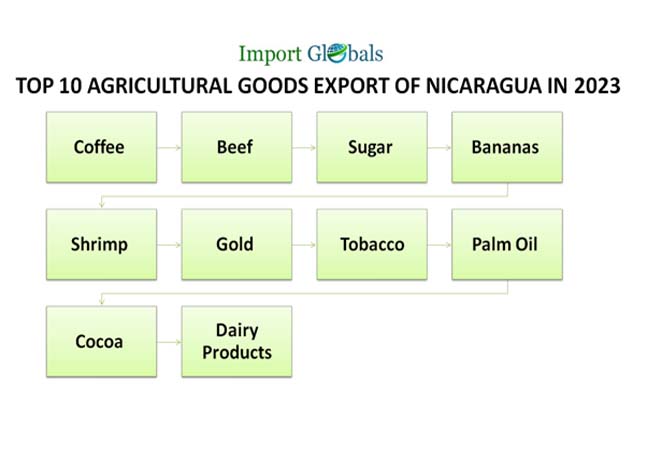 • China – As per the China Import Data, export trade value of agricultural goods from Nicaragua in 2023 – 224 million US dollars.
