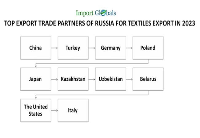 Que. Name the top export trade partners of Russia for textiles export in 2023?