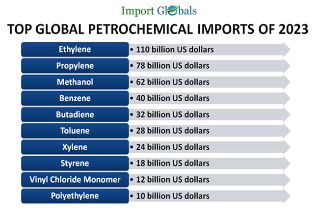 1. Ethylene - Valuation of global Ethylene imports in 2023 - 110 billion US dollars.