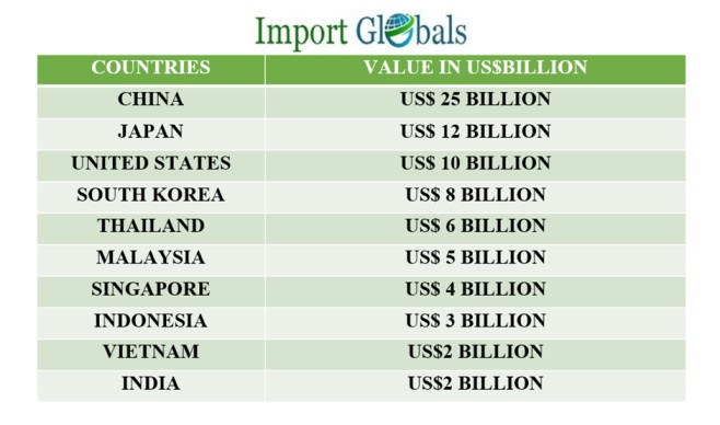 Ans. China is the leading import trading partners in the recent year with a value of US$25 Billion.
