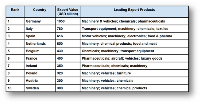 Europe continues to be one of the most important trading areas in the world, making a substantial contribution to the overall amount of international commerce. According to the latest Europe Export Data projections, the combined European nations will contribute around 15% of world exports and 14% of global imports in 2024. The European Union is one of the top three exporters, along with China and the United States, accounting for almost 13% of all merchandise exports worldwide. With their strong industrial production and cutting-edge technology sectors, major economies like Germany, France, the Netherlands, and Italy account for a significant amount of this trade value. As per Europe Import Export Customs Trade Data, Europe plays an essential role in bridging international supply networks across continents, as seen by its balanced import and export operations. The region's proportion of global trade guarantees consistent demand for consumer products, machinery, and raw materials around the globe, and its free market and trade agreements support Europe's continued dominance in global trade.