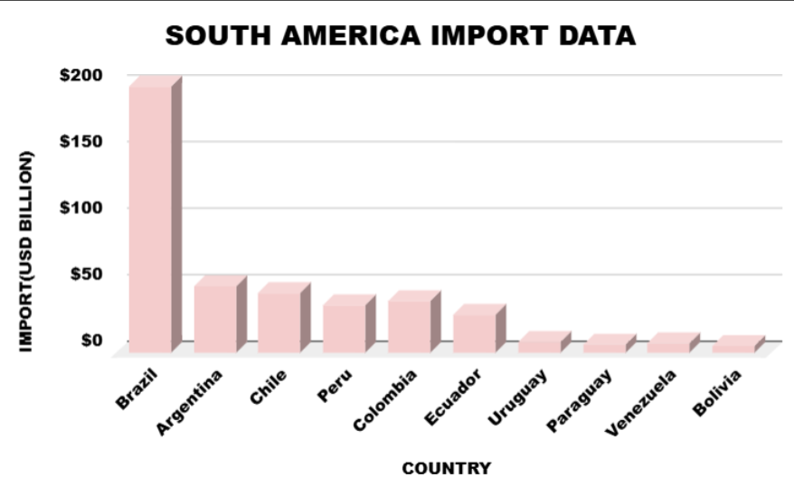From the Andes Mountains on the western border to the Amazon Rainforest in the north, South America is a huge continent with a varied topography. Its strategic location makes it an essential hub for international trade, particularly with adjacent regions like North America, Europe, and Africa, according to South America Import Data Import Globals. Geographically, because of their proximity and related industries, nations like Brazil, Argentina, Chile, and Peru have robust supply chains and commercial relations within the continent. The greatest economy in South America, Brazil, is intimately connected to nations like Argentina for agricultural products, Chile for copper, and Peru for mineral resources. It is a major supplier of oil, soybeans, and iron ore according to South America Export Data.