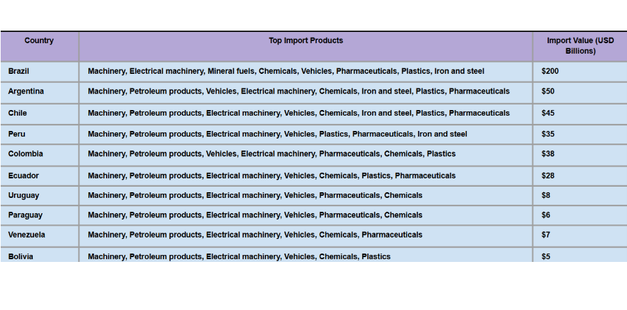 Positive trends were also observed in South American imports; according to South America Import Export Data From Import Globals, import volumes increased by 4% while prices decreased by 2%, resulting in a 2% increase in import values overall. This increase in imports shows that regional demand is growing and represents a recovery from earlier downturns.