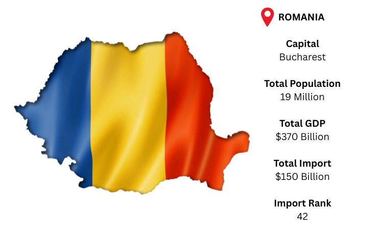 With a thriving industrial sector that imports electronics, automobiles, energy items, and machinery to support its manufacturing and consumer markets, Romania is a developing trading hub in Eastern Europe. Romania's capital is Bucharest, and its access to international suppliers is greatly aided by Black Sea ports such as Constanța. As per Romania import data, Romania, which has a population of over 19 million and a GDP of approximately USD 370 billion, is expected to import roughly USD 150 billion in total, indicating a growing need for intermediate and completed products.